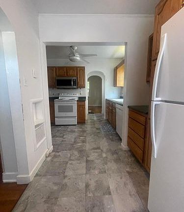 Charming home with many updates. Hardwood floors 3 bedrooms one down two up. Fenced in back yard also off street parking in the rear. Full basement unfinished.