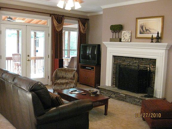 Great home on a large, private wooded lot & covered front porch. Home with open floorplan, all new interior paint, and carpeting. Spacious kitchen with stained cabinets, recessed lighting, black appliances, Island, gas cooking, and breakfast bar. Large great room with stone fireplace, ceiling fan and leads to oversized screened in porch with slate flooring. Separate dining room. Master on the main with private bath has double vanity, separate shower & whirlpool tub. Lg finished base with kitchen, Murphy bed & full bath with tiled shower. Great location to 285 & downtown