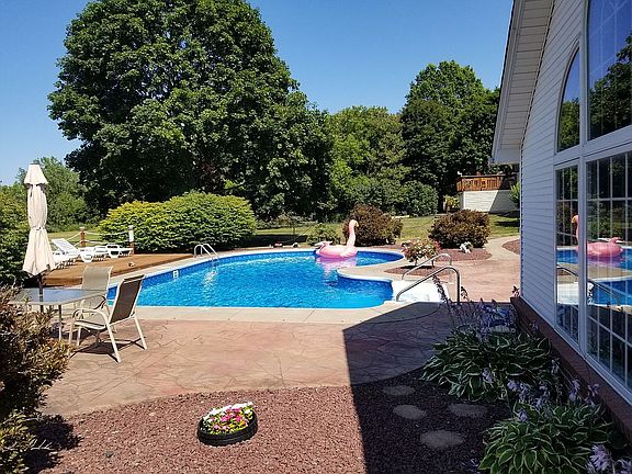 Completely finished modified raised ranch pool home. This home is set up for entertaining and stay at home vacations for all four seasons. Beautiful heated In Ground pool for summer, In Door Hot Tub room for cooler nights and a cozy raised panel mahogany pub room with masonry gas fireplace for snuggling on the cold winter nights. Two and a half car finished garage with vinyl chip epoxy floor keeps your vehicles cool and clean in the summer and warm and clean in the winter. For those stormy nights this home is protected by a 12kw whole home natural gas fueled automatic backup generator. Eat in Kitchen updated in 2020 with new Quartz Counter Tops, painted cabinets and new LG appliances (Refrigerator/Freezer, Convection Gas Oven/Range, Microwave, and Dishwasher). New Pella Windows installed in 2017. Large Laundry with cabinets, deep stainless steel sink, washer, dryer and second refrigerator/freezer. Outside this home has a beautiful family/pet safe black vinyl chain link fenced backyard.