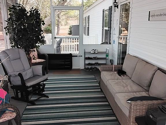 Beautiful like new 2021 Clayton Cavalier mobile home with 3 bedrooms and 2 baths in sought after Comer's Cove on the intracoastal waterway in Cedar Point, NC. Upgraded interior includes drywall, crown moldings throughout. Kitchen and bath have upgraded base cabinets with soft close drawers, granite counter tops and back splash in kitchen. Outside features large deck and 10x20 screened porch with additional 10x10 rear deck for grilling. 10x12 wired utility shed/workshop for all your storage and project needs. Comer's Cove amenities include pool, dock with boat ramp and trash pickup. Lot rent $625 per month