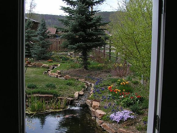 Unique in-town home with updated kitchen and a fully landscaped yard with pond & sounds of a running creek! Step through sliding back doors into a different world...large redwood deck looking out over fully landscaped yard with a pond, small running creek/ditch, flowers, bushes, grass, sitting areas, storage shed, work shop, fully fenced to keep wildlife out, sprinkling system, hot tub, lower stone patio.