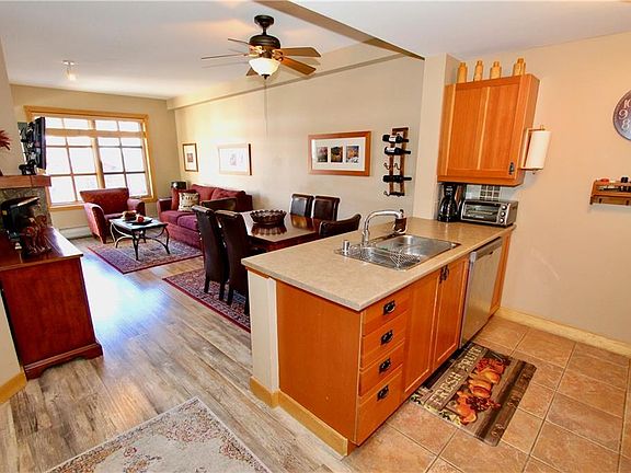 AMAZING South facing ski slope & Eastern VIEWS of the Ten Mile Range "SKY" chutes. 4 piece stainless appliances, wood flooring, rock surround gas fireplace & outdoor patio/deck. Passage Point offers 3 recently updated outdoor hot tubs, new roof Summer 2020, fitness room, ski & bike storage, common laundry & underground parking. Home is offered fully furnished & "turn-key" ready for your immediate use or rental.
