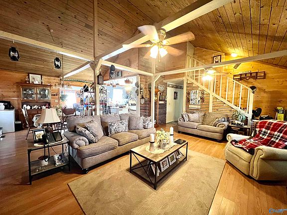 Enjoy quiet country living with this beautiful log home that is situated on 13 acres of mostly rolling pasture, with fenced in area for your livestock. Property also features a pond and a barn! Home is 3 bedrooms with 2.5 baths and also includes a large bonus room upstairs and office downstairs. Come take a look around!