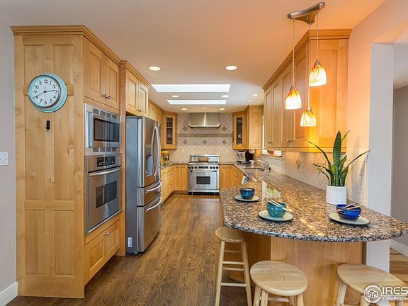 Gorgeous remodeled ranch in Country Club Park w/high-end finishes. Master suite w/gas fireplace, 2 walk in closets, 5-piece luxury bathroom w/bidet, spray shower. Gourmet kitchen w/Dacor range, slab granite counters, alder wood cabinetry, double ovens, Sub-Zero wine frig. Office w/ 3/4 bath could be used as bdrm. Energy efficient w/PV Solar, tankless water heater. Indoor/outdoor living with patios, hot tub. Garage has built-in cabinetry, finished flooring. Storage shed & RV Parking with hookup.