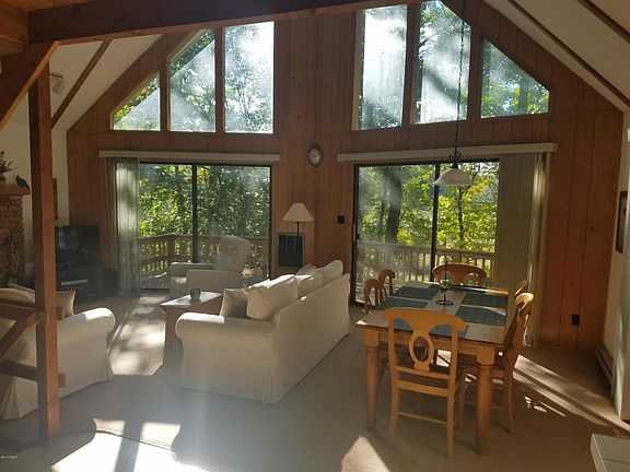 Bring your kayaks! Stunning Chalet home located right across from the small boat launch area on Deerfield lake. After a day on the lake you will appreciate coming home and relaxing on the large front deck with seasonal lake views. Enjoy an evening cookout and relaxing in the screened porch. The family room is spacious and includes a hot tub! This home is nestled on an oversized lot that is just over an acre! 3x the normal size.
