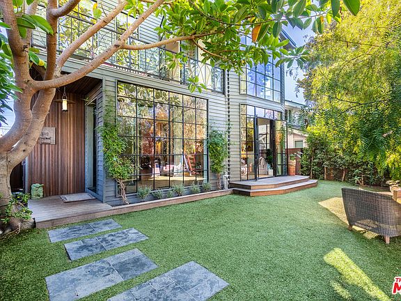 Fully rebuilt in 2014, this breathtaking Kim Gordon designed beauty sits in a peaceful street in the Oxford Triangle. Floor-to-ceiling windows bring light & leafy views into every room while a variety of tiles, French Oak floors & hand-plastered Venetian marble walls give a rich patina. The sun-drenched open-floor plan feels loft-like w/ 10ft high ceilings throughout the house & the elevated Chefs kitchen boasts top-of-the-line appliances & custom white oak cabinetry. To relax, just step out into the garden & enjoy your own private spa, sauna & outdoor shower - all heated by solar panels. Upstairs are 2 spacious bedrooms, a shared bathroom and a full laundry room. Step into the sanctuary that is the master suite - w/ 5 floor-to-ceiling windows, walk-in closet, balcony and luxurious bathroom that could compete w/ a luxury spa. With potentially 2 offices w/separate entrances (bedrooms 4 & 5), & with one of them in a separate raised structure featuring vaulted ceilings & surround windows.