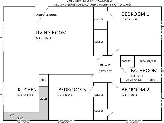 - Total interior livable area: 1,000 sqft
