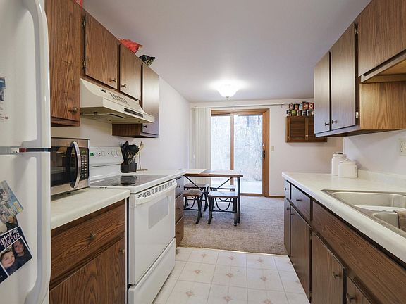 Move right in!! This 2 bedroom condo has updated carpeting. Nice sized master bedroom with a walk in closet. Separate dining area with patio doors that lead to a wooded yard. The attached garage has extra space for storage. First floor laundry adds to the conveniences surrounding the condo life. All of the appliances, including the freezer, are staying. Ample storage/closet space fills the condo.
