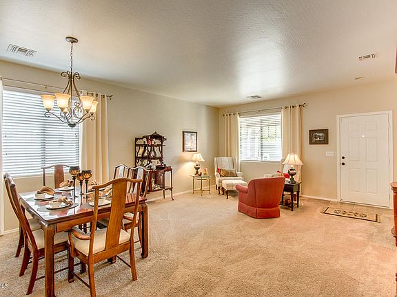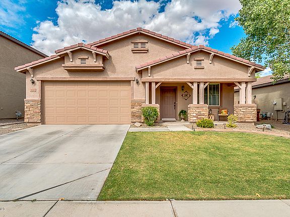 An absolutely stunning home located in the golf course community of Johnson Ranch. The kitchen features oak cabinets with bronze door hardware, granite countertops, travertine backsplash with glass accents, solar tube, stainless steel appliances & a tile floor. The master bedroom has 2 closets & a master bath with granite countertops, separate shower/soaking tub & a private toilet room. All 4 bedrooms have ceiling fans & the guest bath has been upgraded with granite. The garage has lots of storage with cabinets & storage racks. The garage also has an epoxy floor, soft water system & tank less hot water heater. The back yard features a must have covered patio. This house has been upgraded with oil rubbed bronze door hardware throughout. Johnson Ranch is unmatched with 3 community pools, championship golf course, clubhouse, parks, tennis, basketball courts & more.