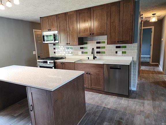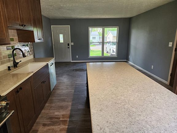 Come fall in love with this updated modern farmhouse designed open concept 3 bedroom home on double lot with privacy fenced back yard in a desired neighborhood on Northeast side of Gas City. Everything is brand new…converted to gas furnace and added air conditioning in 2024. Added gas hookup option for stove and water heater. Totally new bathroom with walk in shower. New siding late 2023. All new kitchen cabinets, quartz countertop, gorgeous ceramic and glass backsplash, large eat at island, high end stainless steel gas stove, microwave, dishwasher and refrigerator complete the look. Additional wall of cabinets in laundry room for extra storage or pantry items. All electrical outlets have been updated, new exterior and interior doors, new trim throughout, new ceiling lighting throughout, and new porcelain flooring throughout. This house is a must see!!! Immediate occupancy at closing!! MOTIVATED SELLER says bring us an offer!