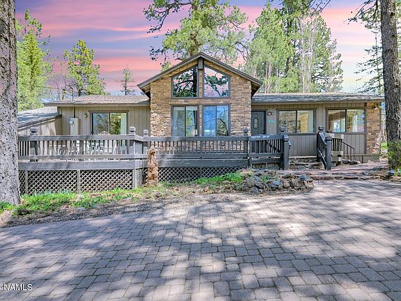 Opportunity awaits! This beautiful cabin in the pines is the perfect retreat to escape the heat. Gorgeous corner lot, loaded with blooming irises and tulips, towering ponderosa pines and the home itself has great bones. 3 bed, 2 bath with stunning vaulted tongue and groove ceiling and exposed beams. Enjoy an evening fire in your American Heritage wood burning stove. Imagine sipping coffee on one of two decks, savoring the peace and tranquility of Munds Park. This home is approximately .5 miles from the esteemed Pinewood Country Club. and less than 1 mile from Pinewood Trailhead. Outdoor activity access has never been better! Bring your tool belt and dreams to make this home into your perfect getaway, primary residence, or vacation rental. No HOA!