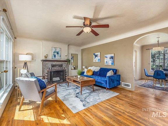 Charming East Ender! So many amenities in this sweet 1937 built home. Coved doorways and nooks! Original vintage light fixtures, warm hardwoods, a woodburning fireplace in the living and family rooms. Dining room has built-ins for displaying or serving. New furnace and air conditioner, 2 year old roof and new gutters, Exterior has been freshly painted, 3 year old water heater and newer windows throughout. A new refrigerator and stove in 2023. The Enchanting back yard is great for entertaining friends and family or enjoying quiet morning time. A Large utility room boasts a sink and built in ironing board. An abundance of storage with an additional large area with shelving makes a great space for doing crafts. Attached One car garage with RV parking in rear at alley. In addition, there is a large shed with permanent shelving. The back yard is wired for a hot tub. Enjoy the convenience of walking to the Greenbelt, Botanical Gardens, Downtown, BSU, Military Reserve and the infamous Roosevelt Market.