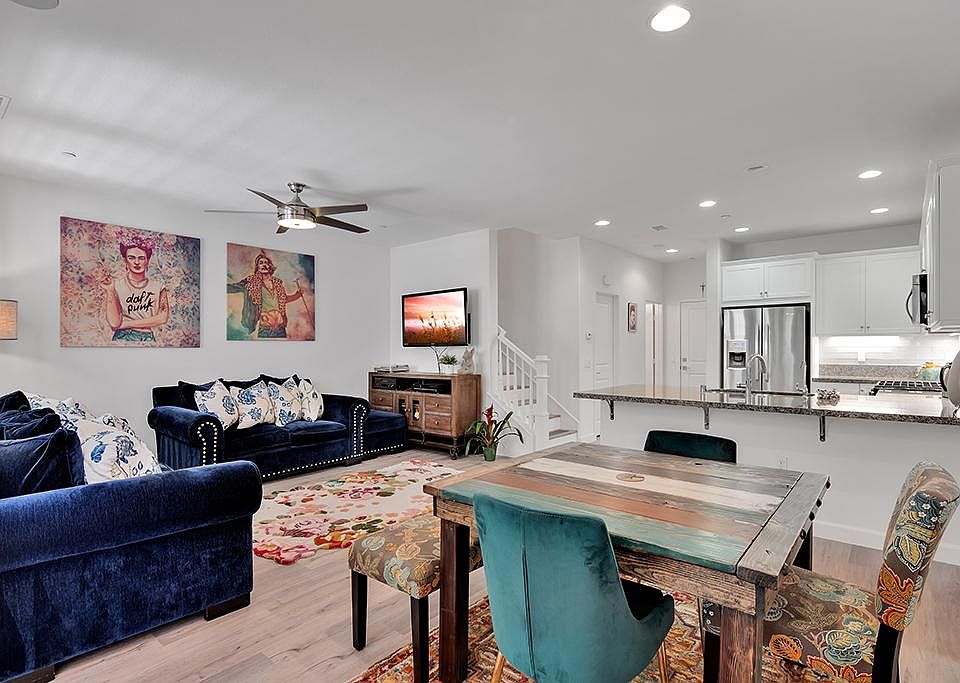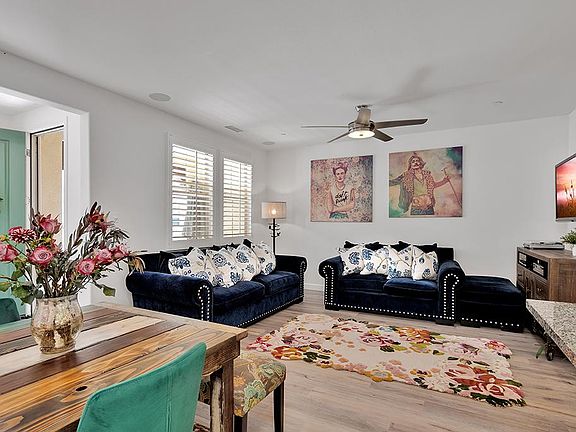 This immaculate, turnkey home is located in the gated community of El Paseo in Foothill Ranch. Open floorplan of 3 Bedrooms / 2.5 Baths and front patio. Solid surface flooring installed throughout the first floor, stairs, and upstairs hall. Kitchen with stainless steel appliances, reverse osmosis H2O filter, granite countertop and custom backsplash. There is a whole house water softener system, all bedrooms & living room have ceiling fans installed, and the master bedroom features a large walk-in closet and balcony deck. Retractable front door screen, large 2 car garage with overhead racks/storage and electric car plug in enablement. Resort style community amenities with swimming pool, club house, BBQ stations, tot lot and fire pit. Close to shopping and major transportation routes. Owner will consider pets / small dog. No smoking. Washer & Dryer included. 2 car attached garage included. Gated community. Tenant responsible for all monthly fees except HOA dues. Association has pool, fire pit, BB / picnic area, clubhouse and playground.
