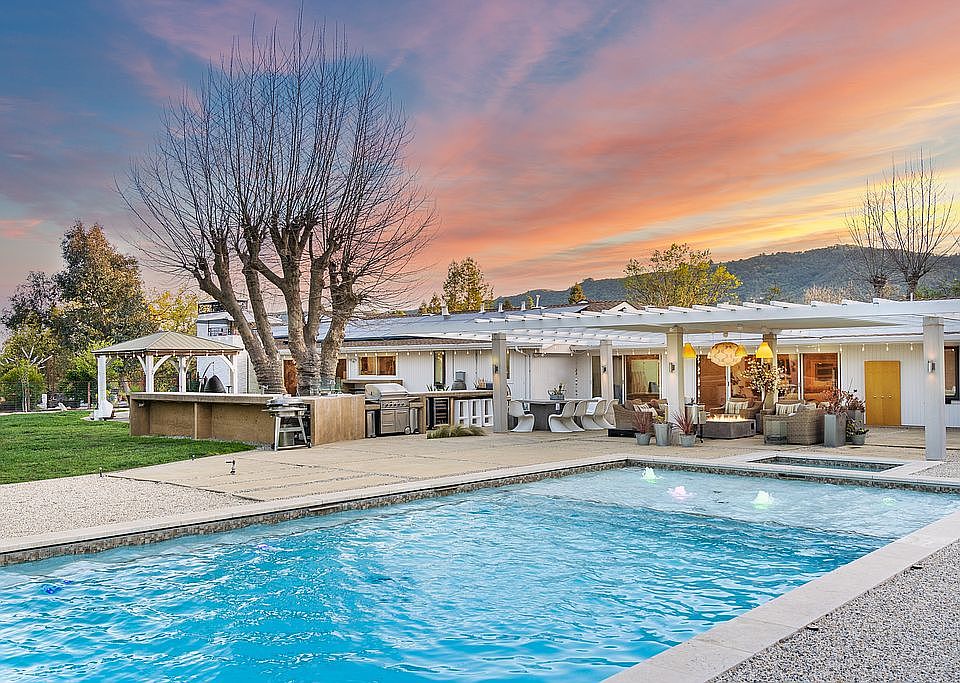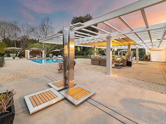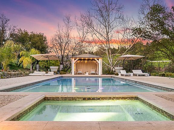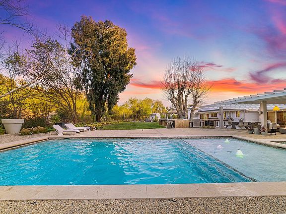 This sophisticated redesigned gated modern estate resides in the secluded and highly sought after El Pintado loop neighborhood of Danville. Situated on a 1.37 +/- acre usable view lot, this expansive property is surrounded by mature landscaping creating tremendous privacy with spectacular hillside views. This remodeled single level home is surrounded by sensational resort-like desert style fully drought tolerant landscaped grounds and offers numerous outdoor entertaining spaces featuring all usable flat spaces. This one-of-a-kind property includes a modern pool with Acapulco shelf, several water features and 8 person spa, outdoor showers, a private cabana, and zero maintenance pergola for lounging. The enormous custom built outdoor kitchen features waterfall counters, a wet bar, Kegerator, Ice maker, and DCS grill just to name a few. Additional highlights include a custom designed built-in fire pit, lush lawn area, mature fruit trees and raised planters, a multi sports court, play structure, real sand imported from Monterey beaches play area, and a lifesize outdoor chess set. These fabulous and fun spaces are perfect for day-to-day life, or non-stop entertaining for friends and family! The open floor plan is sure to impress with custom finishes throughout including a serene foyer, high ceilings, incredible tile and wide-plank floors. Venture into the great room with an impressive stacked marble feature wall and large wood burning fireplace, a spacious dining room, and beautiful kitchen overlooking the expansive backyard. The masterfully built Chef’s kitchen boasts Quartz countertops, classic subway backsplash, custom cabinetry, top-of-the-line stainless steel appliances, and a custom detachable cafe window to the outdoors & cafe counter. Highlights of the home include designer lighting, custom wall treatments, and picturesque brand new custom windows and wall to wall sliders throughout the property, showcasing the spectacular surrounding views. The master bedroom sanctuary spans across the back of the home with sliding doors to the front and backyard, flooded with natural light. This is truly a tranquil elegant retreat with a stacked marble wall and modern 2 way see through gas fireplace, sitting area and a stylish barn door. The remarkable ensuite offers stone floors, double vanities with marble countertops, and a large glass enclosed shower with two showerheads. The magnificent open closet is lined with functioning skylights and features a built-in closet system, sitting area, and extra space for a vanity. Each of the secondary bedrooms are more than generous in size and have access to the exterior, creating the ultimate indoor/outdoor living ambiance. Additional features include Tesla leased solar for home, owned security system w/6 exterior cameras, shed for storage, triple custom laser cut steel gates, Nest thermostats & smoke/carbon monoxide detectors, Leviton Wifi/Bluetooth control lighting system, B-hive Wifi/Bluetooth control drip system throughout the property landscaping, functioning Velux windows in ALL 3 bathrooms, and plenty room for RV/Boat storage. Approx. 1,100 FT wraparound driveway with dual gated access/exit. Close to top-rated San Ramon Valley schools, parks, trails, Mt. Diablo, downtown Danville, and convenient freeway access South to Silicon Valley, North to Sac and West San Francisco. *This property has a multitude of possibilities for expansion. Currently the owner has custom plans for a one-of-a-kind 2,200-2,500 addition.
