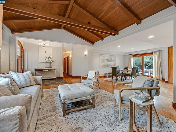 Situated on a flat, usable 1-acre lot, this single-story estate offers exceptional flexibility & space. Main home features 4 bedrooms, 2.5 baths & 3,179 sq. ft. of open-concept living, bright & airy floorplan, & seamless indoor-outdoor flow. Kitchen features a large island with a round breakfast counter, walk-in pantry & multiple skylights. The primary suite is truly an oasis with a floor-to-ceiling stone fireplace, large windows & door looking out to the backyard & a walk-in closet. The primary bath features a jetted tub, spacious shower & double sink vanity. A detached, single story, 630 sq.ft. 1 bed, 1 bath ADU (connected by breezeway) adds even more value—perfect for multigenerational living, guests, or rental income with it's own private entrance. The backyard is an entertainer’s paradise, boasting a sparkling pool, relaxing spa, expansive lawn, outdoor shower & ample space to create your dream setting—add a sport court, additional ADU, or build your own private retreat. Car enthusiast's dream with a total of 6 garage spaces & driveway space for 10+ cars. RV/boat parking with hookups. Opportunities like this don’t come often—space, style & potential in one of Danville’s most sought-after neighborhoods! Minutes to 680 freeway entrances, downtown Danville & top-rated schools.