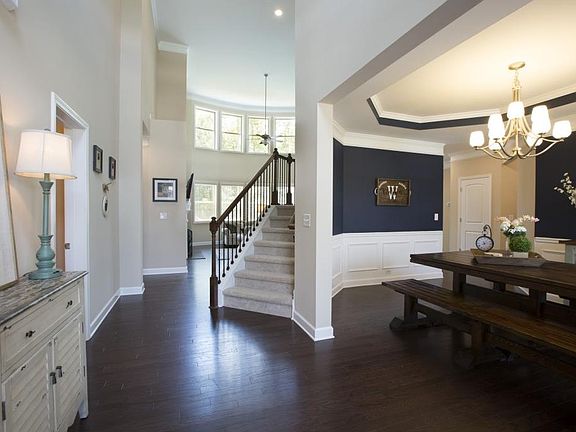 Incredible opportunity in sought after Bridghampton neighborhood. Master on Main with beautiful homesite! Open floorplan with soaring 2 story family room and hardwoods throughout main level. Chef's kitchen with oversized island and hidden walk-in pantry. Huge office with custom 8ft french doors. Bright sunroom with vaulted ceilings overlooking the large, flat, grassy backyard with a tree buffer for total privacy! Upgrades galore! Incredible, open, unfinished basement ready for future entertaining space. All Lawn Care is included in the HOA!
