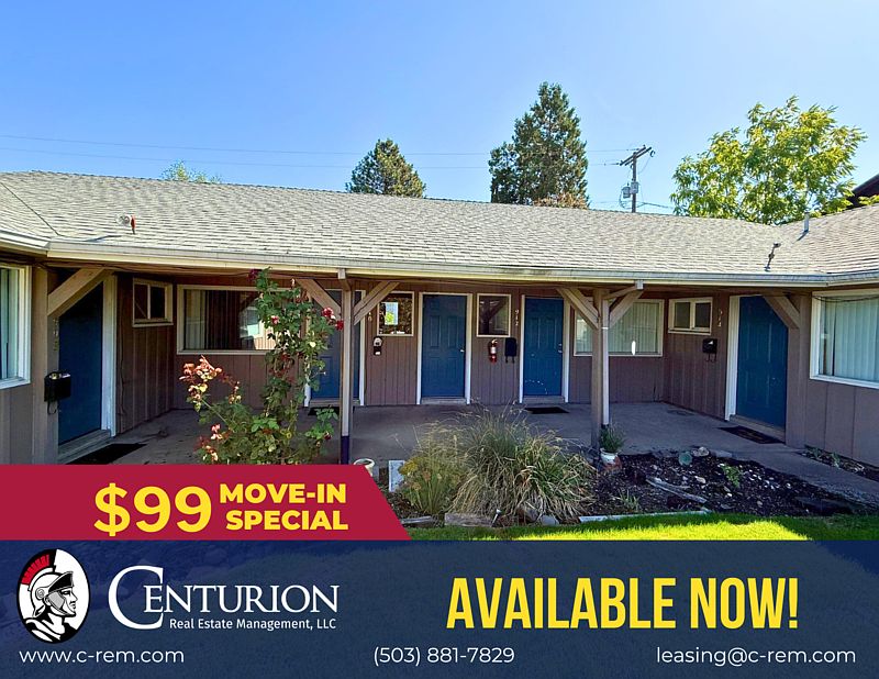 TERMS: * Rent: $1,045/mo * Deposit: $1,000 (On Approved Credit) * Application Fee: $68/per adult 18+ * Tenancy: 1 Year Lease * Heat Type: Electric * Note: Non-Smoking Property PET POLICY: * Dog Allowed * Cat Allowed * 2 Pets Max Under 25lbs * $400 Additional Deposit per Pet * Pet Rent May Vary on Paw Score (starting at $45 up to $100) * All applicants must complete the Screening Process (https crem. UTILITIES: * Included: Water/Sewer/Garbage * Tenant is Responsible for Electric, Gas (If Applicable), And all Other Utilities AMENITIES: * Refrigerator * Stove/Oven 1 STORY COMPLEX: LAUNDRY: * Washer & Dryer Hook-Ups WATER TYPE: * City SEWAGE TYPE: * City LANDSCAPING: * Tenant Responsibility PARKING: * Off-Street Parking 1. Move-in Special ONLY applies to the current month.(If Applicable). Rent Specials ONLY apply to NEW TENANTS, NOT CURRENT TENANTS. 2. The application process normally takes 1-3 business days. 3. Must see the property physically before the deposit is made. 4. If you have a pet, ESA or you don't have a pet you must register at https crem.5. Apply to one property at a time. Pet Policy: Notice to all residents and applicants, everyone must complete the screening process. This is not only for pet and animal owners; it applies to residents and applicants who do not own pets. The pet policy includes caged animals and pets. You will not be moved into the unit without this completed. Prices are subject to change, we do not guarantee prices, items change, and errors occur. If there is a discrepancy between a price online and a price in the office, supervising property manager shall have the final say. *Due to overwhelming demand we may be unable to respond to your rental inquiry.* INTERESTED IN THIS PROPERTY? Properties are on a self-showing lockbox and each listing specifies how it is viewed. Feel free to drive by the property to check it out. "This information is deemed reliable, but not guaranteed." Centurion Real Estate Management, LLC 1365 Commercial St. SE Salem OR 97302