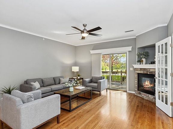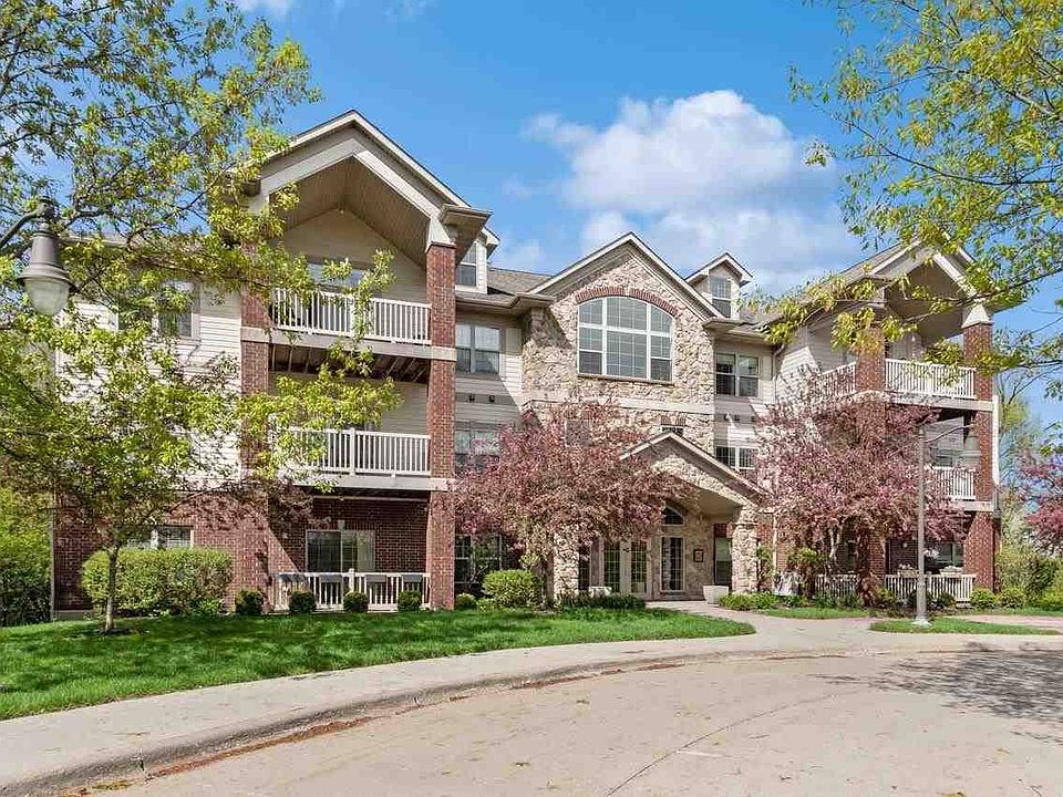 Comfortable, upscale 1,526 sq-ft, 3-bdrm, 2-bath, 1st floor condo with secure underground parking, Universal Design, building elevator up from the garage and to the community room on the 3rd floor, 9-ft ceilings, fireplace, energy efficiency, quartz kitchen counters, oak floors in living room, dining room, and kitchen. Spacious pantry/laundry room. The original furnace, dishwasher, garbage disposal, refrigerator and (now-gas) stove, washer and dryer have been replaced in recent years, and a good number of light fixtures and fans have been updated. Large, covered patio with expansive views of greenspace and timber. Well-crafted lodge-like building away from other developments but close to downtown amenities and Foster Crossing/Peninsula trails, dog park and other restful greenspaces, footbridge to Coralville for eagle watching. Nearby Elks Club available membership offers dining in a beautiful new clubhouse, golf and swimming. A short walk away in the Peninsula Neighborhood is a restaurant, coffee shop, and salon. The Condo has windows to the east and south and is on the southeast corner of Building A (there are two buildings on the front circle drive and ample extra parking in back).