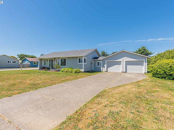 Bandon by the Sea! Single level, well maintained home in excellent centralized location with great walk-ability to downtown and in-town amenities. Home is very welcoming with great curb appeal, colorful front garden area, flat usable yard, and clean updated interior. Kitchen is appointed with stainless appliances, quartz counters, pantry and custom cabinets. Sprawling floor plan with 3 bedrooms and 2 full baths, primary suite with walk-in closet and attached full bath with walk-in shower, tons of storage, new fixtures throughout, attached and over sized double-car garage and nice long driveway for ample parking options. Recent updates include new roof, siding, windows, flooring, kitchen, appliances, bathrooms, electrical and plumbing. Easy to see, call today!