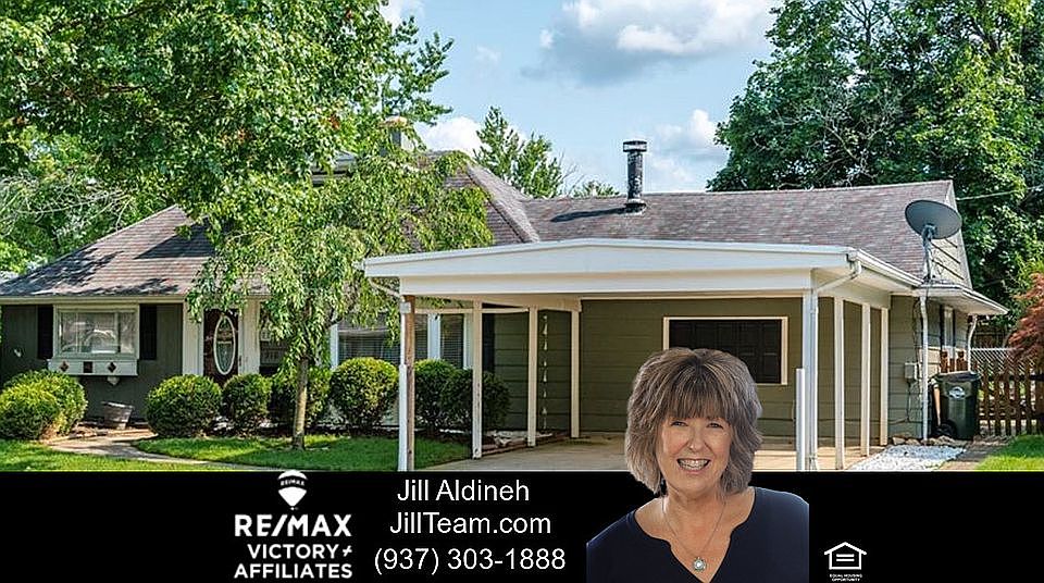 Pretty 1.5 story home on corner lot in great Kettering location. Mature landscaping & nice curb appeal. Vinyl wood flooring on main level. Open & light filled living/dining rooms w/bay window. Kitchen features oak cabinets, tile backsplash & W/D hookup. Large family/media room has gas FP, built-in bookcases & double doors that lead to fenced backyard w/patio & paver fire pit area. Beautiful sunroom has ceramic tile flooring. 2 bedrooms & full bath complete the main level. 2nd level offers bedroom or office space. 2 car covered port. Schedule a showing soon to tour this charming home. FP/chimney not warranted.