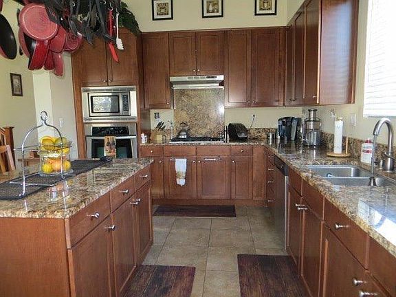 Upgrades throughout this former Orchard Glen model home. Located close to downtown Tehachapi, schools, shopping and freeway access. This 4 bedroom 2 3/4 bath home has custom window coverings, built in cabinetry, granite counters and stainless steal appliances. One bedroom and bath are located on the main level. Formal living room and family room downstairs and an additional upstairs bonus/family room. The master suite is very large with built in cabinet, jet tub and double sinks. Outside offers landscaping front and back yard, storage shed and back patio with shade gazebo.