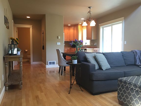 2 Bedroom, 1.1 Bath condo in the end unit of the Oyster Cove Condominimums. Property comes with a unique open concept layout, joining a loft style upstairs living area with the downstairs dining room/living space and an attached Kitchen. Comes with recessed lighting throughout the main living areas, access to a private pattio through a glass slider and a 2 car attached garage.