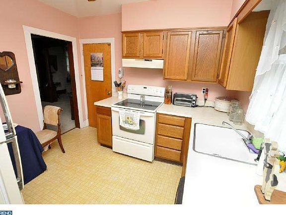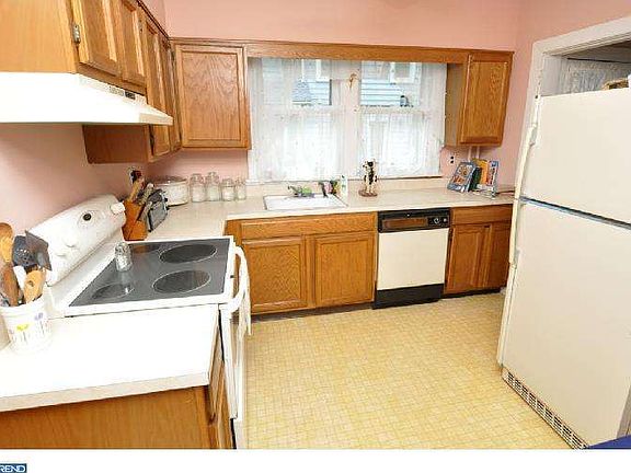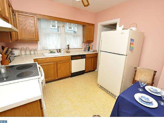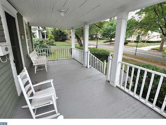 Great curb appeal for this 2-story Colonial home in Historic Palmyra Township. Wonderful home entry welcomes you with an expansive front covered porch opening to generous size livingroom and dining room area.(original hardwood floors under carpets) Spacious eat-in kitchen complete with refrigerator, stove and dishwasher. Convenient walk in laundry off kitchen with washer and dryer included. ~ Second floor living features (3) nice size bedrooms with hall bath with upgraded tile flooring. Newer windows on the 2nd floor. Home also features a newer roof. Full unfinished basmement. Property is being sold with a HMS Home Warranty.~