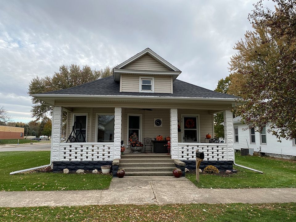This cozy charmer has lots of Character!!! It features Original woodwork throughout, new roof, new windows & gutters, new siding, new carpet, & is freshly painted! It has 2 BR's on main level & 1 BR upstairs or use that room for storage. There's also an office or bonus room & the laundry room is convienently located on the main level. You will want to relax & hang out on the front porch & will enjoy the perfect spot to watch the 4th of July parade. And talk about LOCATION!! This home is on a corner lot across from the school and is close to downtown & the city park. This is a very well maintained home, it's comfortable and warm & is move in ready!! It won't last long so call today to schedule your showing!