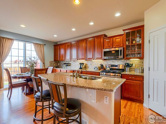 Come see this beautiful four bedroom home in a great Erie location! A covered front porch and lovely landscaping provide excellent curb appeal. This move-in ready home offers a convenient open floor plan and unobstructed mountain views. You will love the eat-in kitchen with granite countertops, new backsplash, stainless steel appliances and a separate dining room. The main floor features gorgeous wood floors and a bright office. Upstairs is host to four spacious bedrooms including the master suite and another suite style bedroom with its own private bath and walk-in closet. The master suite boasts raised ceilings, a luxurious five piece bath and a huge walk-in closet. Additionally the home features a newer roof and exterior paint, three car garage and a patio in the private backyard. This home is in a wonderful neighborhood with a pool and parks nearby. Come see it today!