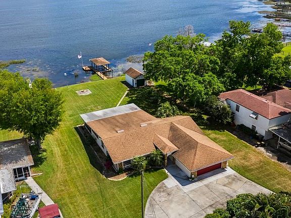 Check out this Immaculate Home located on the Chain of Lakes! This 4 bedroom 2 bath is situated on 1/2 acre and has so much to offer. Located on Lake Jessie with beautiful Lakefront Views from the Living Room, Kitchen, two of the bedrooms or enjoy your evening from the 15x34 Screened Lanai with Jacuzzi. The Kitchen has been completely updated with Beautiful Wood Cabinets, Granite Countertops, Stainless Steel Appliances with a Large Island for Entertaining. The Ceramic Tile Flooring in the Main Areas of the house is ideal for high traffic and long term wear and tear. The Hall Bathroom has been Updated and there is a large storage room with extra refrigerator right off of the 2 car garage. The AC was replaced in 2020. The seller has installed a large Generator with 2 gas tanks to get you through any storm. Fish off of your dock or store your boat on Lake Jessie as you make great family memories. There is also a storage building included with the sale. Call to make an appointment to see this home today!