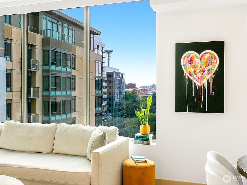 Live at the center of it all in 2200 Westlake — a premier concrete-and-steel community in the heart of South Lake Union. This remodeled 1BR+den corner home offers expansive views of the iconic Space Needle, an abundance of natural light and a versatile den perfect for office or guest space. Beautiful upgrades throughout — including a sleek kitchen & bath, updated flooring, lighting, appliances and finishes. A move-in ready home that blends comfort with sophistication. Venture outside to Whole Foods, top restaurants, yoga, coffee and everything SLU offers. With friendly concierge, secure parking, luxe amenities & no rental cap, this home is vibrant city living and a smart investment.