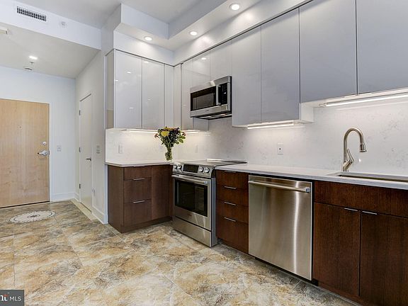 Fabulous two-level condo near convention center, restaurants, shops and more. More than 1,000 square feet, Spacious, high ceilings, upper level bedroom and bath as well as den/office w/ Murphy bed built in. California Closets in master bedroom. High-end Bosch appliances. French doors lead out to a beautiful patio tucked away. Washer/dryer in unit. Parking and storage included. 24 hour front desk.