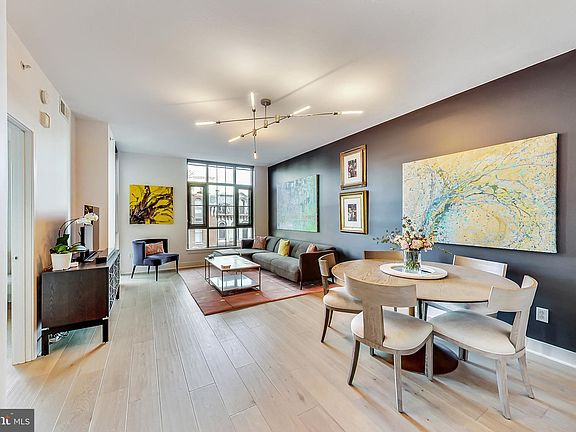 Fantastic and rarely available north-facing unit in the Whitman Condominium bursting with amenities. This updated and stunning home features a recently reimagined gourmet kitchen with high end cabinetry, a pantry, stainless steel appliances, Quartz waterfall counters, and two large peninsulas one with extra storage. The large living and dining areas are bright and open with unobstructed neighborhood views of historic row homes and floor to ceiling windows. The large primary bedroom features a huge custom walk-in closet, large windows, and a luxury ensuite bath with soaking tub and large vanity. There is a second handsomely sized bedroom and a large second bath with a shower. The home features beautiful newer wide plank wood floors throughout, closet systems in every closet, designer lighting, paint and wall coverings and has been meticulously maintained throughout by the original owners. One car garage parking with an eightycubic feet storage unit included. Centrally located, The Whitman boasts a 24-hour concierge, billiard/party room, full gym, and a huge roof terrace with a pool, grills, and seating. Ideal Shaw location close to downtown, shopping, restaurants, Metro, and more.