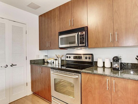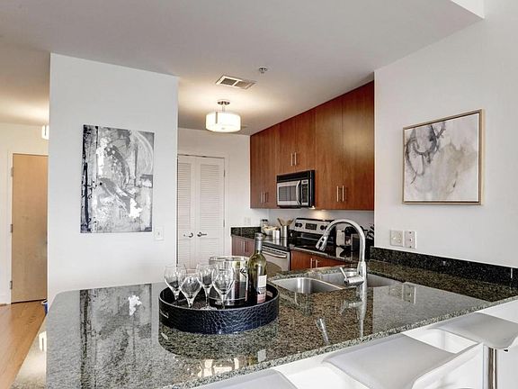 Welcome home to this large 735 sq ft, immaculate 1 Bedroom, 1 Bathroom. - Beautiful maple wood floors, granite countertops with breakfast bar, stainless appliances, and large walk-in custom closet. - Oversized windows on this east facing unit allows for plenty of natural light. - Located next to Blagden Alley, City Center Areas, the convention center. - 1 block to the Mt Vernon Metro stop for easy access all across the city, and direct lines to the airport, Nats Park and the Pentagon. - 1 block from CVS, 0.4mi from Giant - Includes 24 hour front desk, W/D in Unit, amazing views on roof deck with grills and pool, billiard room and gym with plenty of weights and cardio equipment. - GARAGE PARKING INCLUDED - if desired, partially furnished with Bed, dresser, working corner desk, couch, dining table, and chairs, breakfast bar chairs, and entryway table. Water is covered. Renter is responsible for Gas/Electric/Internet/Cable. No smoking.