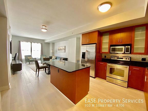 Welcome to The Whitman! This one bedroom, one bathroom condo offers luxury living in one of the city's nicest buildings and has been meticulously updated throughout. It features a practical layout, private balcony, plus a garage parking space included in rent. Located in Mount Vernon Square, residents have access to the best the city has to offer. Apartment Features: Beautiful light hardwood floors recently installed throughout apartment Open concept living/dining area with tons of natural light Gourmet kitchen with stainless steel appliance and granite countertops Good sized bedroom with spacious walk-in closet and custom sliding barn door Private balcony in bedroom overlooking 10th Street Park Full bathroom with dual access via bedroom/closet and entry hallway Washer/Dryer in unit Building Features: Rooftop pool and grill Fitness center Club room with bar area, flat screen TV, leather sofas and pool table 24-hour concierge Parking: One garage parking space included in rental amount. Utilities: Tenants responsible for electric. Water and gas are included in rental amount. Lease Terms: Available immediately. Minimum one year lease. Security deposit equal to one month's rent due upon signing lease. Credit check is required and the cost is $35 per applicant. Pets accepted on a case-by-case basis pending approval by Owner. Tenant is responsible for any applicable building move-in fees. Location: Situated just one block from Mount Vernon-Convention Center Metro Station, there may not be a more convenient location in all of DC. You are directly across the street from Blagden Alley which features some of DC's best spots such as Causa, The Dabney, Calico, Death & Co, plus La Colombe for your morning coffee. You're also close to Logan Circle, 14th Street, and downtown DC for commuters.