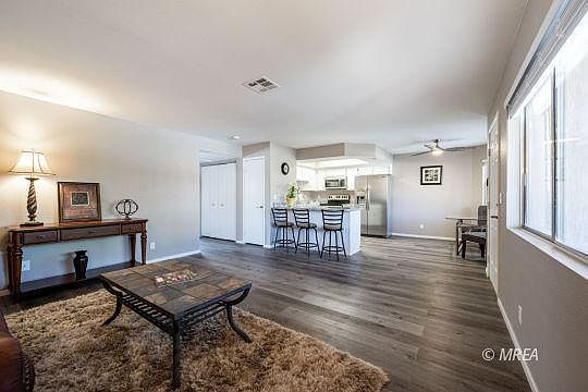 Newly UPDATED designer finishes ZING this Rock 2 Condo! Gorgeous Kitchen with Granite, Stainless appliances, fresh white cabinetry, new hardware put this condo at the TOP of the LIST! Dining Room has brand new Gray wash wood Aviator Fan and Cordless 2" Wood Blinds! Spacious living area neutral to enhance your style! Fresh two tone paint throughout with attention to detail including closet interiors! Master and Guest Bathrooms completely remodeled. New Granite countertops, sinks, Lighting, tall toilets w/new flanges for stability! Rich gray wood look Flooring of high quality vinyl plank throughout. Plush dark gray carpet in Bedrooms. Patio has a view of the mountains and located near upper Hot Tub/Pool/Barbeque area just across the road. Parking nearby, easy access. Enjoy your new home at Rock Springs 2!