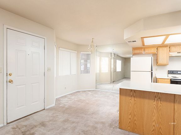 This property is on the main/lower level which makes it highly desirable. It is conveniently close to the pool & spa area offered by the Rock Springs HOA. Guest parking & your covered parking is also located near the unit, so no long walks from your unit to your car! This unit has been professionally cleaned including all carpet throughout. ALL appliances are staying! 5X8 storage room is found on main level. LOWEST priced main level unit for sale in Mesquite!