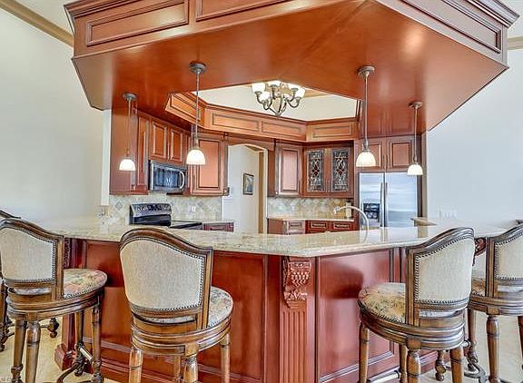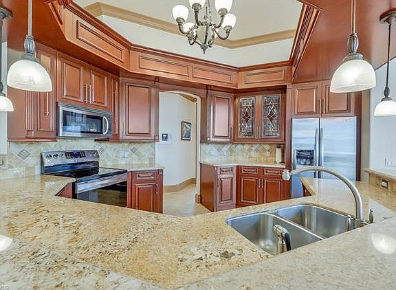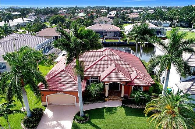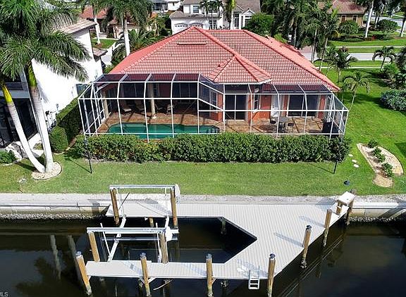 Meticulous Seller who has taken great care of this home in a FANTASTIC location near the Resident's Beach with MARBLE FLOORS, MARBLE COUNTERS, and Cherry Wood Cabinetry. Home boasts 12FT Ceilings that really draw you in, a wonderful split bedroom set-up with upgraded flooring around the pool, a dock with 12,000lb lift and Northwest Exposure to enjoy sunsets from the screened lanai area. Don't miss the chance to buy in this neighborhood where biking or walking to the beach is fun and easy! Sewer Assessment is PAID!