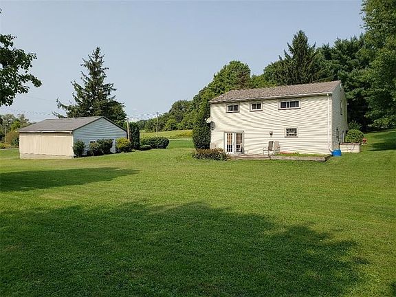 Enjoy life living on this 4 acre property with a farmhouse style home. Sit on the covered front porch and relax. The kitchen and bath both have been remodeled and updated. Main floor features an open living room, dining room and kitchen area. The second level features a spacious family room, 3 bedrooms and a full bath. Bedrooms have roomy closets. Living room opens out onto the back deck for more scenic views. Laundry and utility room on main level. Outside on the level four acre parcel is an oversized 3 stall garage. Nice place to have horses, plenty of space and pasture.