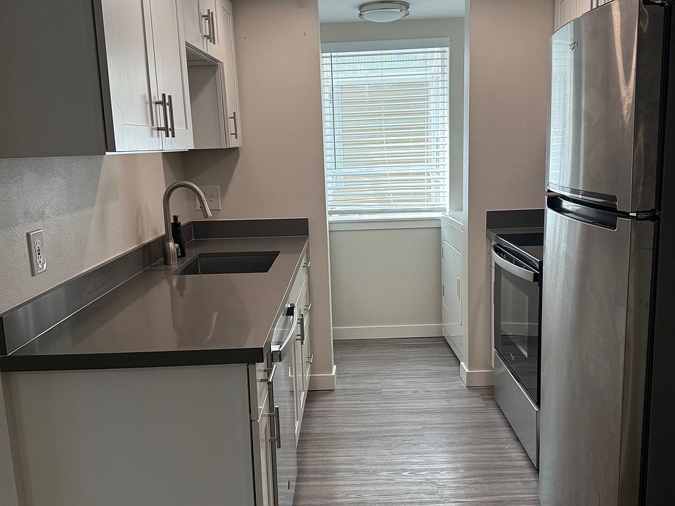 FIRST MONTH FREE! Luxury remodel in the heart of Greenwood. Walking distance to Green Lake and downtown Greenwood with it's vibrant restaurant and bar scene. Easy commute to downtown via Hwy 99. Spacious 1 bedroom, 1 bath apartment with open floor plan, laundry in the unit, and a secure parking space included in the lease. Everything in this apartment is recently renovated, with high end finishes and appliances throughout the unit. Highlights include: * Brand new stainless appliances * Quartz countertops in the kitchen and both bathrooms * White shaker cabinets with soft-close drawers * Luxury vinyl plank flooring throughout the main living area, kitchens, baths and hallways * Newly resurfaced private balcony * Washer and dryer in the unit Call, text or email for a showing. Available now. FIRST MONTH FREE with signed lease by 12/1/2025 12 month lease required No move-in fee No application fee if you apply through Zillow 2.5 income to rent ratio $1700/month $1000 security deposit Tenant pays water/sewer/electricity 1 secure parking space included FIRST MONTH FREE with signed lease by 8/1/2025 12 month lease required No move-in fee No application fee if you apply through Zillow 2.5 income to rent ratio $1700/month $1000 security deposit Tenant pays water/sewer/electricity 1 secure parking space included