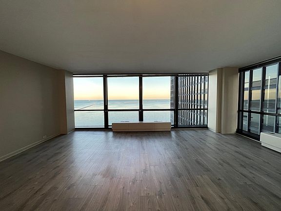Iconic Mies van der Rohe-designed building in prime lakefront location in Streeterville! Beautiful Lake views from this large 1 bedroom/1 bath corner unit sprawling over 841 sqft. Hardwood floors throughout, updated kitchen with white calacatta quartz countertops, white Republic Steel cabinetry, new KitchenAid/ Frigidaire stainless steel appliances and dishwasher. Slate and marble bath with quartz vanity; glass shower door; upgraded sink and shower trim. Well-managed building with 24/7 door and maintenance staff. Rent includes all utilities (cable and internet too) - everything except electric! Amazing location with the lakefront and heart of the city just steps away! Close to Northwestern Campus/Hospital, Oak /Ohio street beach, shopping, restaurants, and transportation. Amenities include 24-hour doorman, maintenance, engineering, onsite property management, laundry, sundeck, receiving, dry cleaners, and convenience store next door at 900 N Lake Shore! Parking available to rent from the building for $300 a month or available immediately 1 block away. This is a no dog building unless they are a service animal. Available April 1st or sooner!