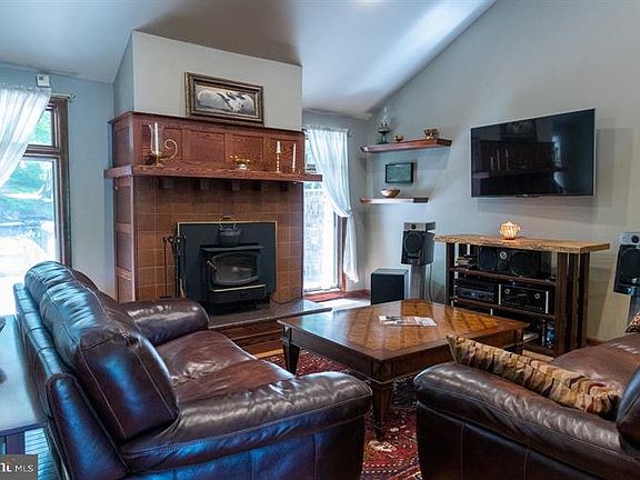 PARADISE AMONGST THE TREES Hidden away on the fringe of the boro is this charming contemporary four bedroom residence. The main level bedroom has been converted into a office, with a full bath just behind, the back yard hardscape is another living space, built-in grilling area, enormous fire pit, (6) person jacuzzi overlooking a lush landscape, oasis.The first floor has handicap ramp from the garage into the kitchen, the eat in kitchen is a chef s dream with a Viking 8 burner stove w double oven, dishwasher, fridge and island. The living room has a beautiful fireplace that is open concept to the entire main floor. The basement is half completed with walk out and laundry and work room. The Upstairs has the lavish master bathroom that is like a spa and 3 bedrooms. The master has wide planked hard wood and trim throughout.