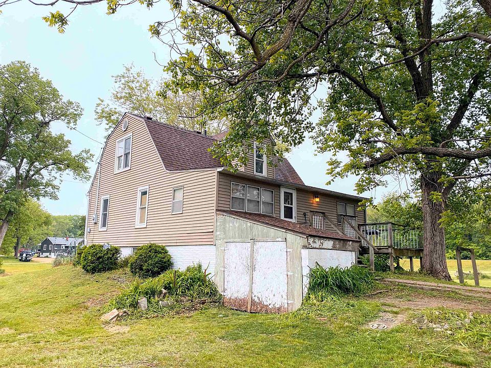 3 bedroom, 1 bath home on a dead end street. Oversized yard, basement and outside storage area attached to house. Deck on both sides of the home with lots of green space and mature trees. Forced air furnace and Central air. This home is located in the floodplain and being sold as is. Seller is keeping .14 acres furthest south of the property. That amount will be deducted from the total.