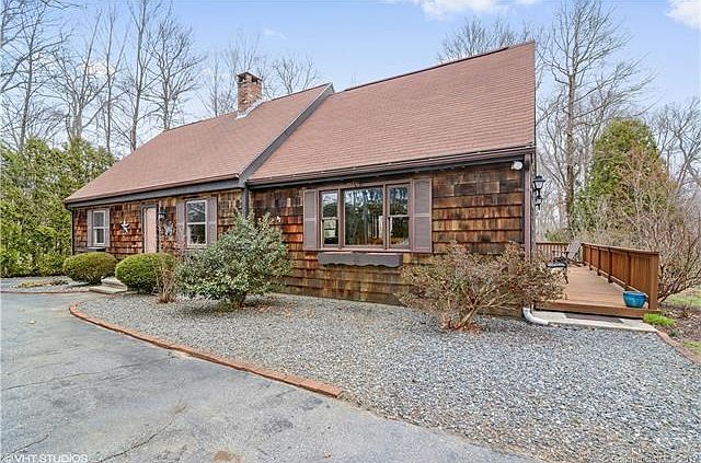 Cedar shingled post and beam Cape with 3 bedrooms, 2 baths, set on a 1 acre lot with circular drive, wrap around deck and only 2.5 miles from Downtown Mystic! Open Floor plan, with vaulted ceilings, central air and oil heat. Spacious eat in kitchen, two first floor bedrooms, first floor laundry and 2nd floor master bedroom loft with full bath. Easy access to I-95, shopping, excellent restaurants and more!
