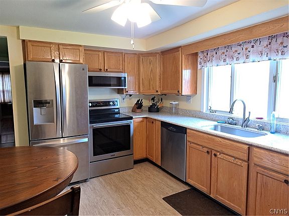 A RARE FIND RANCH that's MOVE IN READY in the City Of Rome! Such a great neighborhood & close to everything! Offers 3 bedrooms, 1 1/2 baths, main level laundry or it can be put back into the basement where it was years ago. Large living room with a triple window, fully applianced eat in oak kitchen with lots of cabinetry, granite counter tops, stainless steel undermount sink & great views of the back yard. This home is nicely landscaped & has great curb appeal, attached breezeway & 1 car garage for easy access to this home. You will love the private back yard with concrete patio, fully fenced with vinyl fencing that has the look of wood & last but not least a nice storage shed for those off season items. don't forget that this home has a full basement & central air too! Don't snooze on one, let's make it your new address, showings will start at 9:00 am on April 27th, 2024, Call today & get your appointment scheduled with the agent of your choice to see this home before its gone! Square footage from the assessor records of 1161 differ from the agents measurements of 1248 of the exterior of the home.