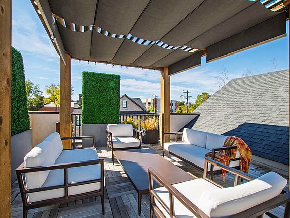This is city living—simplified. Just steps from The Village District and designed for both convenience and style, this condominium combines an airy open floor plan with 11 foot ceilings, oversized windows that flood the home with natural light, and thoughtful details throughout. A chef's kitchen anchors the main level, with dining area and living space with gas fireplace. The upper floors feature generous bedrooms with balconies and a luxe primary suite with walk-in closet and bathroom. The rooftop terrace with trellis and wet bar creates an exceptional space for entertaining or unwinding under the stars. A private two-car garage and elevator make daily living effortless. Whether you want to be in the heart of the city, enjoying all that Raleigh has to offer, or be able to lock & leave with ease, this is your chance.