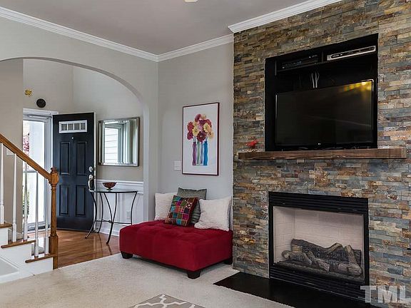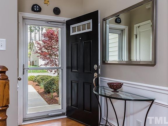 Beautiful, sun filled home with open floor plan and in excellent condition. Living room features updated gas log fireplace with reclaimed wood mantle and crown moulding. Master suite boasts two walk in closets! Home is freshly painted, updated backsplash and solid surface counters in kitchen, updated hall bath, and tiled floor in all baths. Yard is professionally landscaped. Enjoy the large patio overlooking the relaxing wooded setting. Convenient to RTP, UNC, and Duke. One year HMS warranty included.