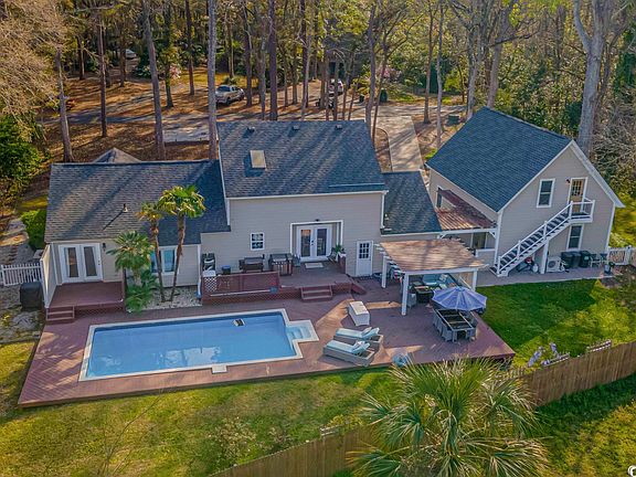 Welcome to 910 Old Bridge Road, a stunning 4 bedroom, 3 bathroom oasis nestled among the trees in the highly sought-after community of The Forest at Briarcliffe in Myrtle Beach. This beautiful home offers a perfect blend of luxury and comfort, with a spacious open floor plan, fantastic outdoor living spaces, and thoughtful upgrades throughout. As you enter the home, you'll be captivated by the natural light flooding in through the large windows, highlighting the tasteful design and architectural features. The main level boasts 3 bedrooms and a living area that seamlessly flows into the dining room and kitchen, perfect for entertaining and family gatherings. Upstairs, you'll discover a private retreat complete with an additional bedroom, as well as a versatile loft/den area that could be used as an office, playroom, or media room. Step outside and indulge in the serene, resort-style outdoor living space, featuring a sparkling pool and an expansive patio area that's perfect for relaxing, dining, or hosting get-togethers. The recently added detached 2-car garage offers not only ample storage and parking but also a partially finished bonus room and a temperature-controlled fitness room, catering to all your needs and hobbies. Surrounded by the lush greenery of The Forest at Briarcliffe, this home offers a tranquil setting while still being conveniently close to shopping, dining, and entertainment options in Myrtle Beach. Don't miss this exceptional opportunity to call this enchanting property your forever home! This home is currently listed under current appraised value. Full appraisal report shall be provided upon request.