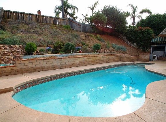 Enjoy this 4br, 2 ba generous single story on private cul de sac. Remodeled kitchen: refaced cabinets with cherry doors, granite counters with breakfast bar, SS appliances, recessed lighting, whole house fan, embellished FP, cherry laminate flooring, NEW carpet, 5 skylights, Neuman dual pane windows and slider. Generous master bedroom with newly remodeled bath, indoor laundry room. Pool & spa, solar electric home. 1 mile to S Cbad State Beach, Coaster, close to Cbad outlets & Legoland, No HOA fees.