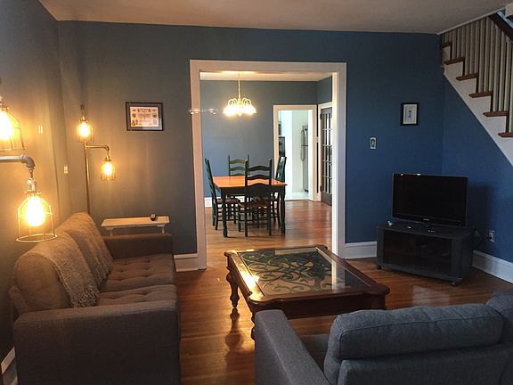 Charming twin home in sought after West Chester. Enjoy your morning coffee on the covered front porch. Enter the home into the spacious living room with a cozy brick fireplace and hardwood floors. Hardwood flows thoughout the entire house, no carpeting. Completely remodeled kitchen with stainless steel appliances, gas stove, granite countertops, a kitchen pantry, and additional dinning room pantry 1-2017. All new windows installed 2-2017 double paned double hung security glass. Upper level master bedroom features hardwood floors and a walk in closet with built-in shelving. 2 Additional bedrooms and a full bath with tile floor and cast iron tub/shower complete the main level. The finished 3rd level could be used as your 4th bedroom or an extra room for whatever you may need. Entire house has high ceilings with ceiling fan/light combo. Walkout basement can be finished to offer additional living space, or use it as the perfect space for all your storage needs. This home is conveniently located nearby access to major roadways, West Goshen Shopping Center, and walking distance to the lively borough of West Chester without the in town street parking issue. Driveway with 2 extra parking spaces.